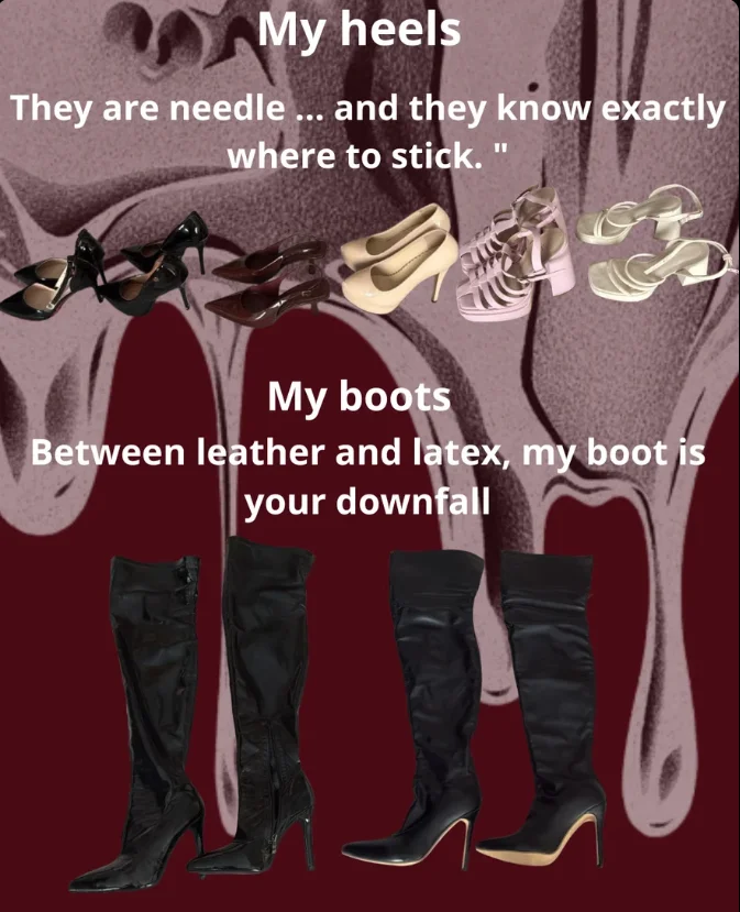 Cock Rating, Camel Toe, Flashing, Erotic Dance, Foot Fetish, Heels, Latex, Office, Topless, Spanking, Nipple Toys, Nylon, Oil Show, Blowjob, Cowgirl, Creampie, Fingering, Footjob, Handjob, Masturbation, Striptease, Tittyfuck, Cuckold, Deepthroat, Dildo or Vibrator, Dirty Talk, Gagging, Humiliation, Jerk-off Instruction, Mistress, Orgasm